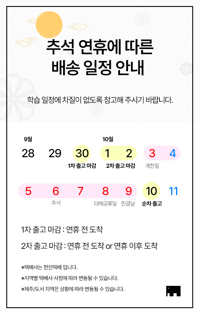 10월 공휴일 및 추석 연휴 기간, 학습 문의와 1:1 문의 답변을 쉬어갑니다.
